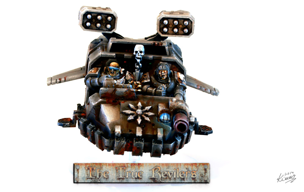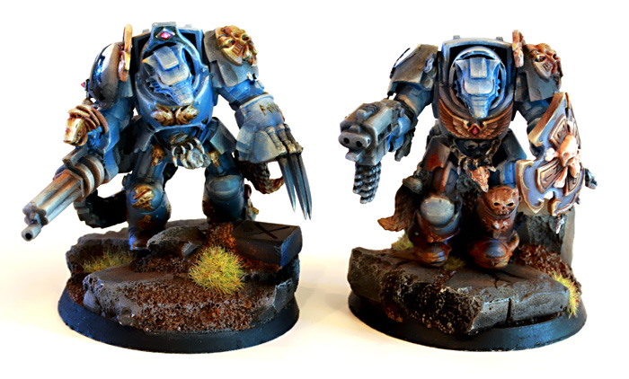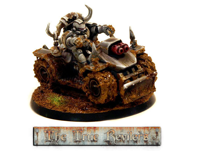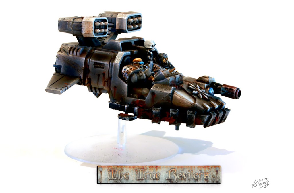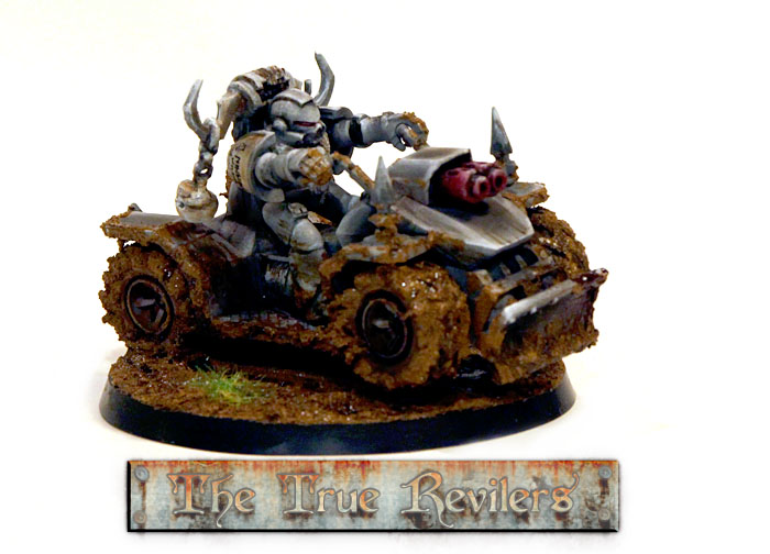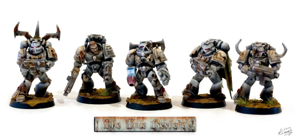 This is a faction of my own design. It is supposed to be a Chaos tainted splinter-group of the Space Marines faction Raven Guard and is played with their rules.