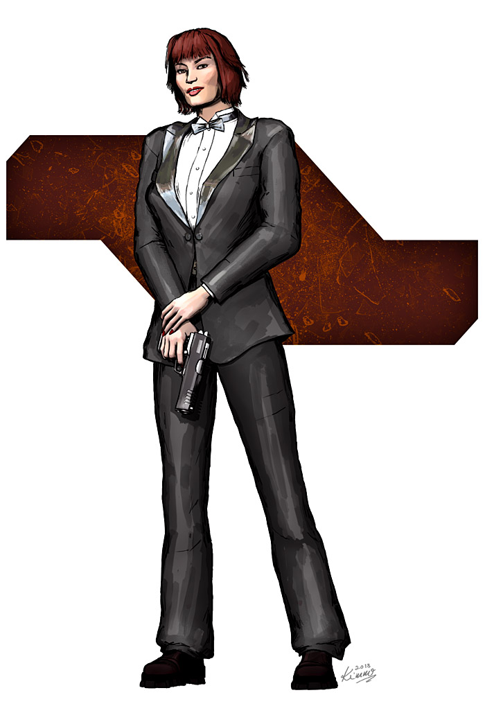 An illustration of a role-playing game character for the Shadowrun role-playing game setting. Milana Hverc is an ingenious negotiator who uses her charismatic abilities to secure good deals for whoever she happens to work for.