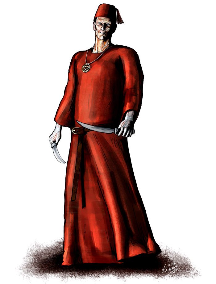 An illustration of a cultist character from the Cult of the Skinless. Fit for any fantasy-themed and even Call of Cthulhu role-playing game setting.